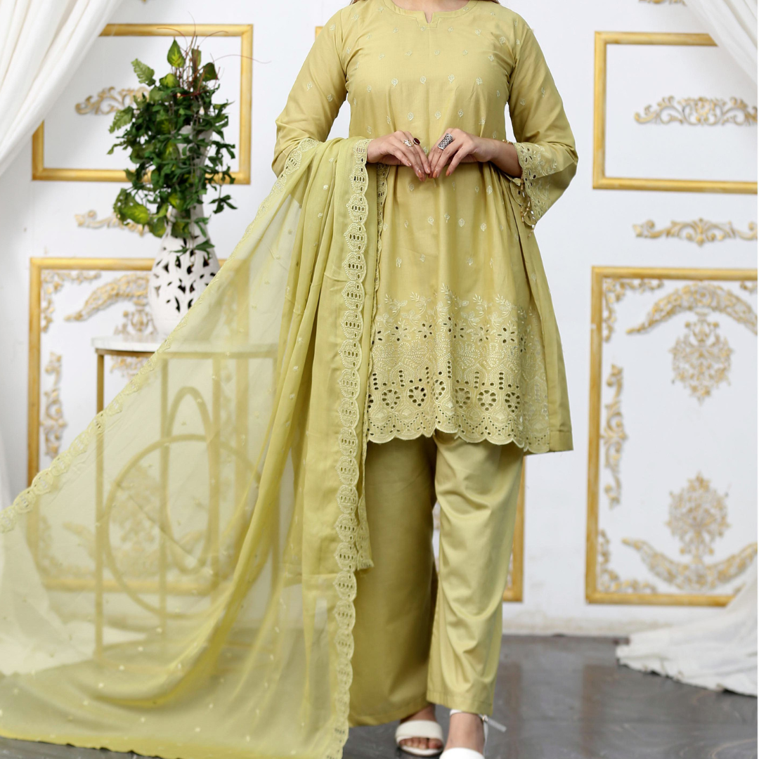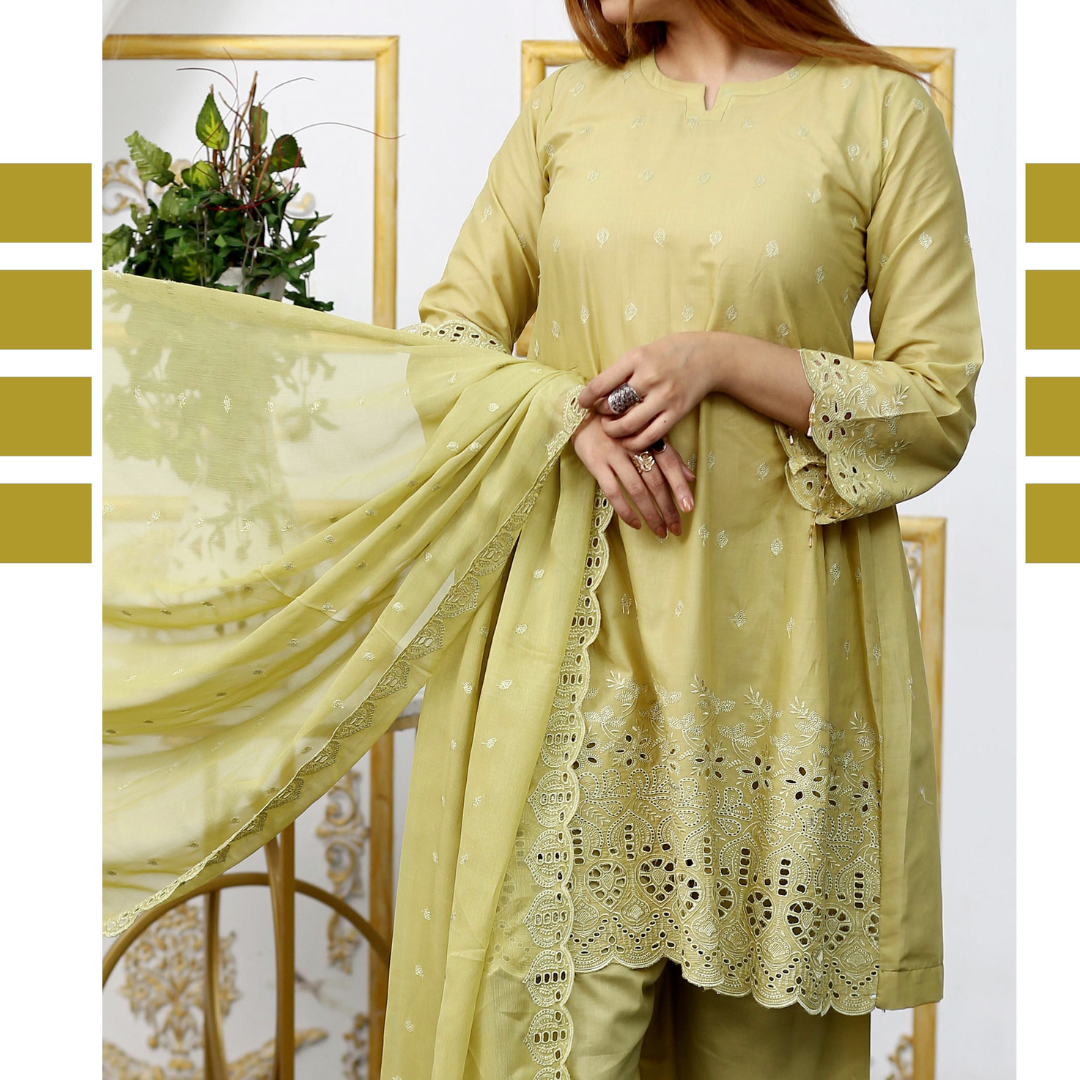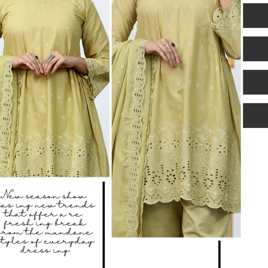 Elevate your summer wardrobe with Drexup's exquisite Zarlish Embroidered Lawn Chicken Kari ensemble. This unstitched masterpiece features:
