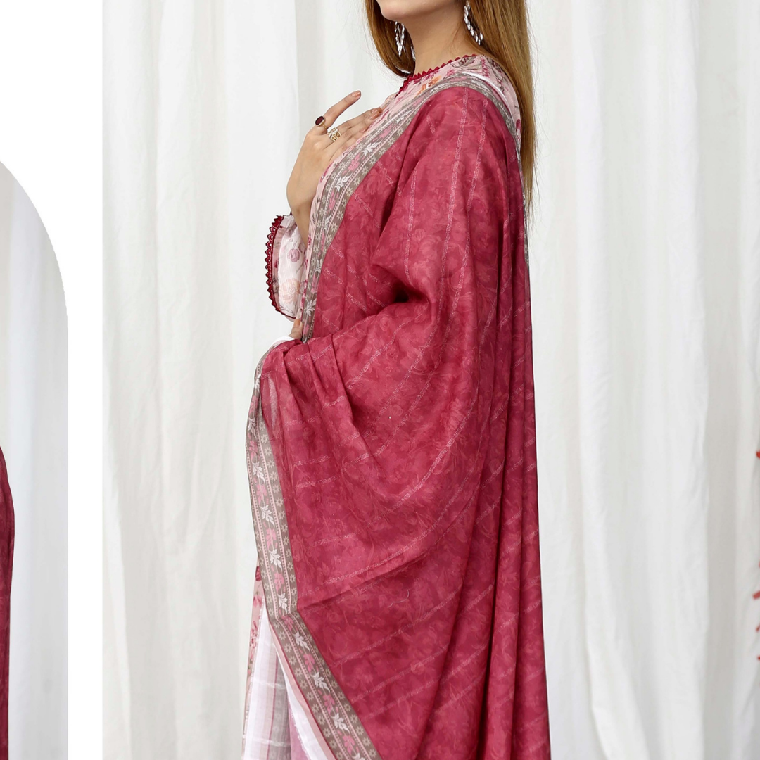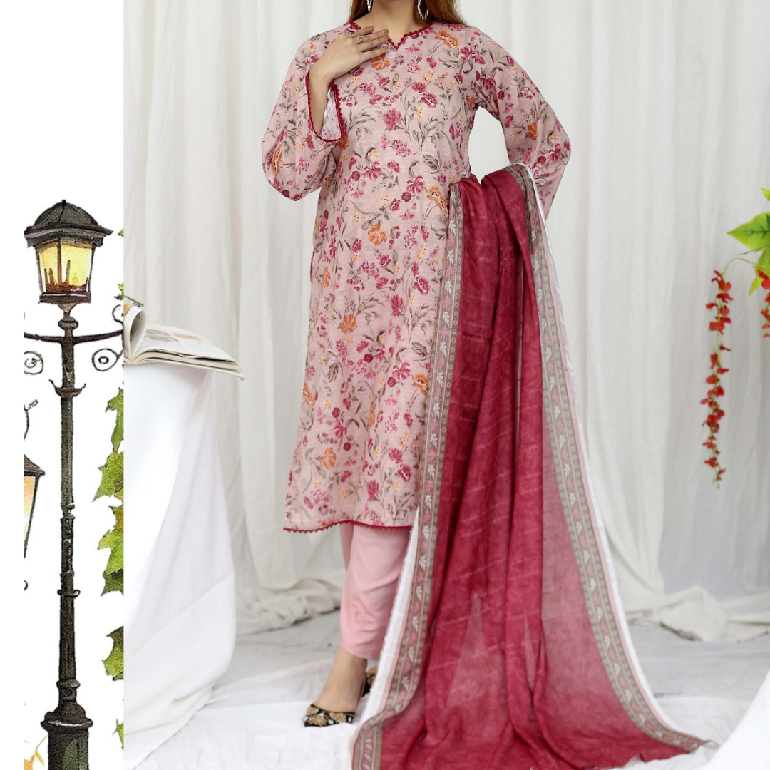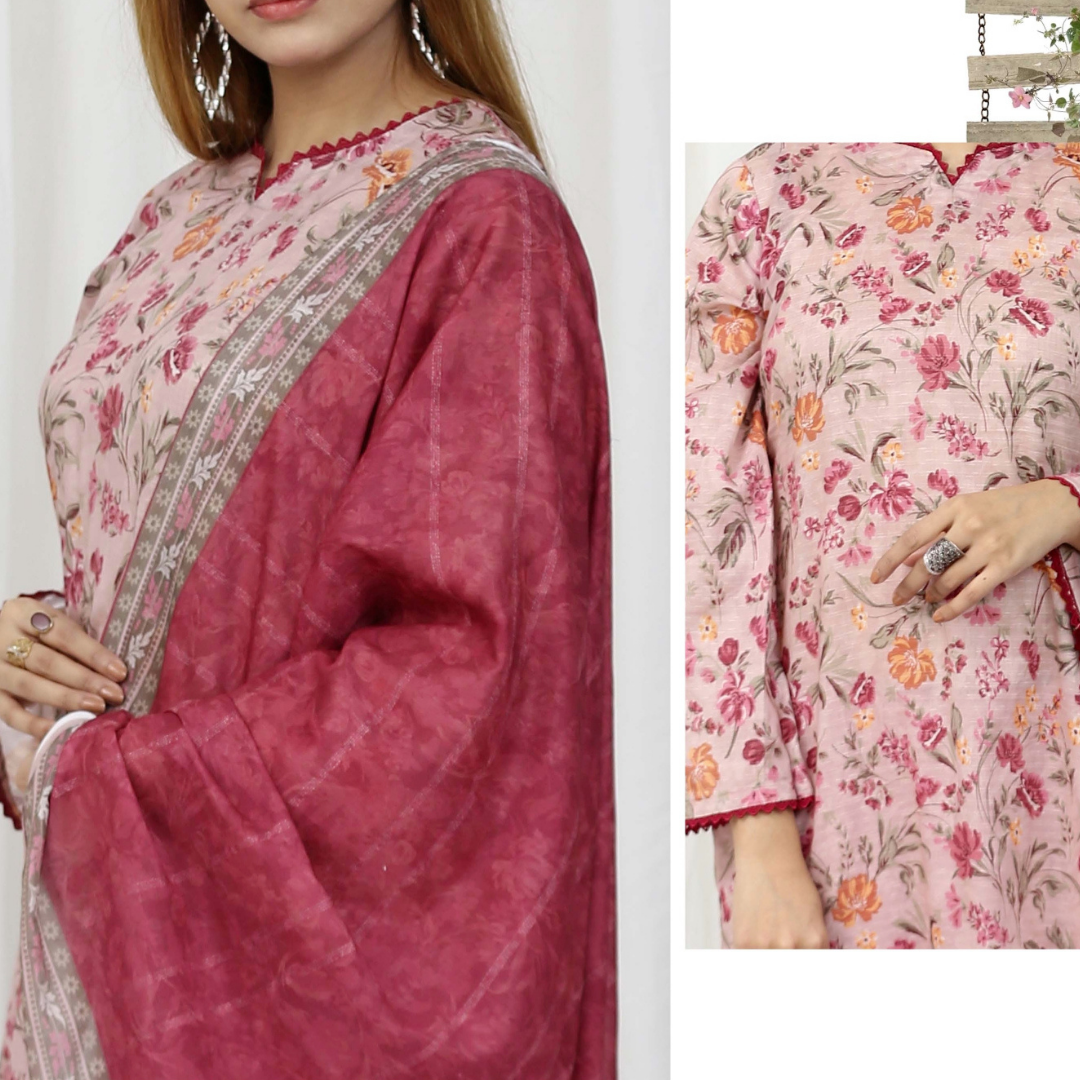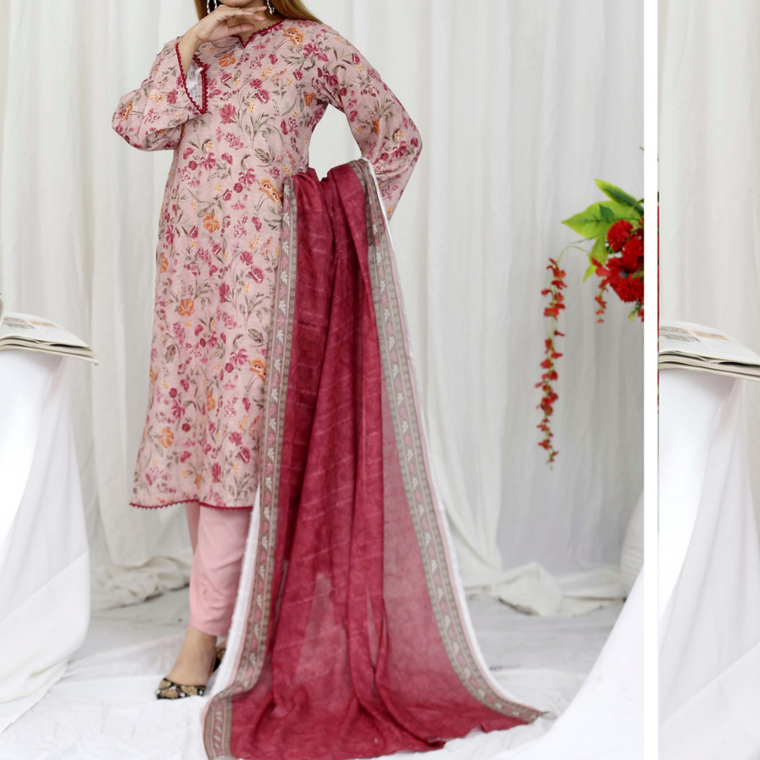 Discover Drexup’s elegant Bana Dora Print Unstitched Suit, perfect for any occasion. Featuring a printed lawn dupatta, a plain trouser, and premium fabric for ultimate comfort and style. This suit offers versatile options for customization, ensuring a unique outfit that reflects your style. Ideal for casual and semi-formal wear, it's crafted with care to meet your fashion needs.