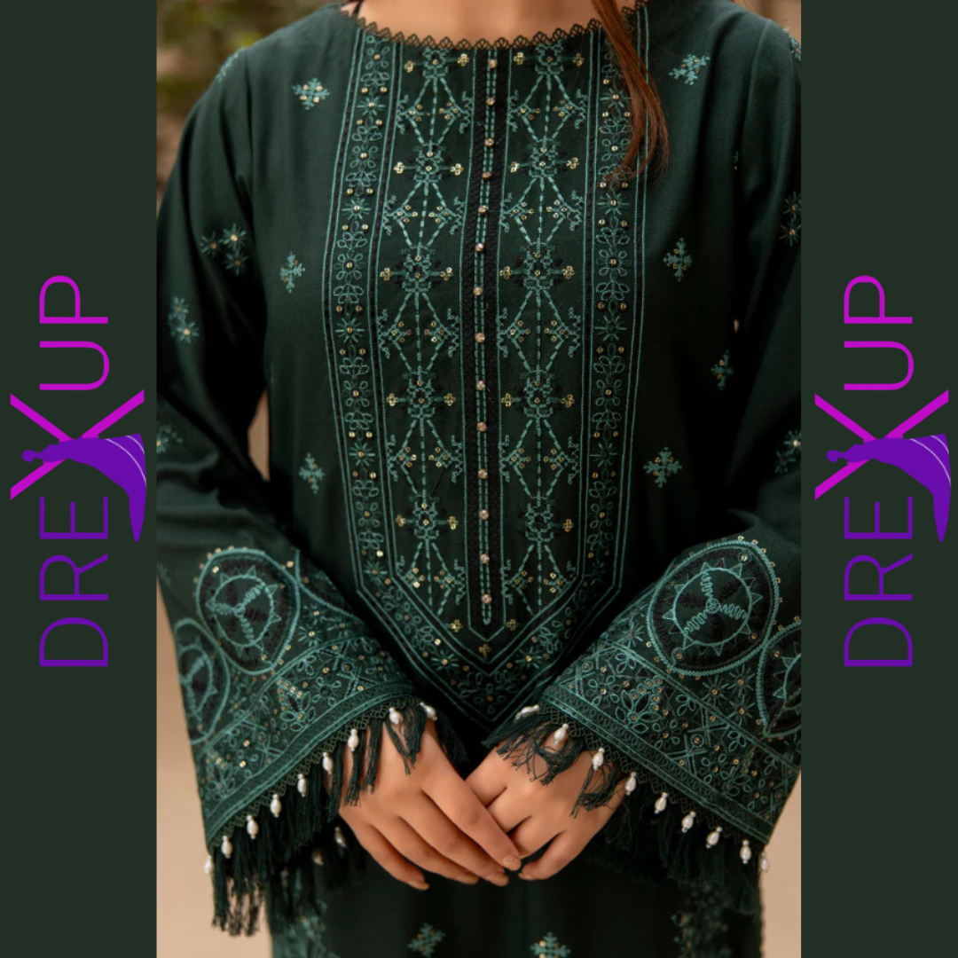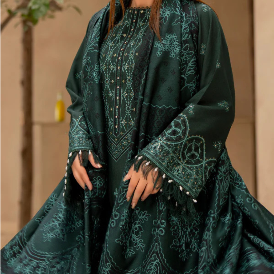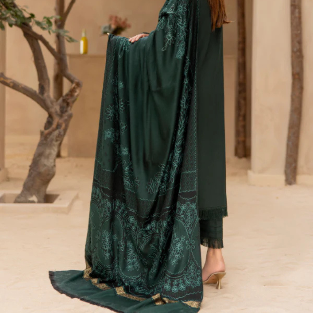 Elevate your winter wardrobe with the Gul-posh Winter Luxury Collection by Waresha. Featuring intricately designed, heavy embroidered wool shawls, this collection combines elegance and warmth, making it the perfect addition to your luxurious winter style. Experience premium craftsmanship and timeless sophistication with Waresha’s latest Vol 22 collection. Embroidered Shirt – Front panel adorned with intricate embroidery. Embroidered Sleeves – Stunningly detailed to complement the shirt. Plain Back – Designed for a seamless look. Trouser – Tailored for comfort and style. Wool Self-Jacquard Shawl – Luxuriously soft with a unique textured design.