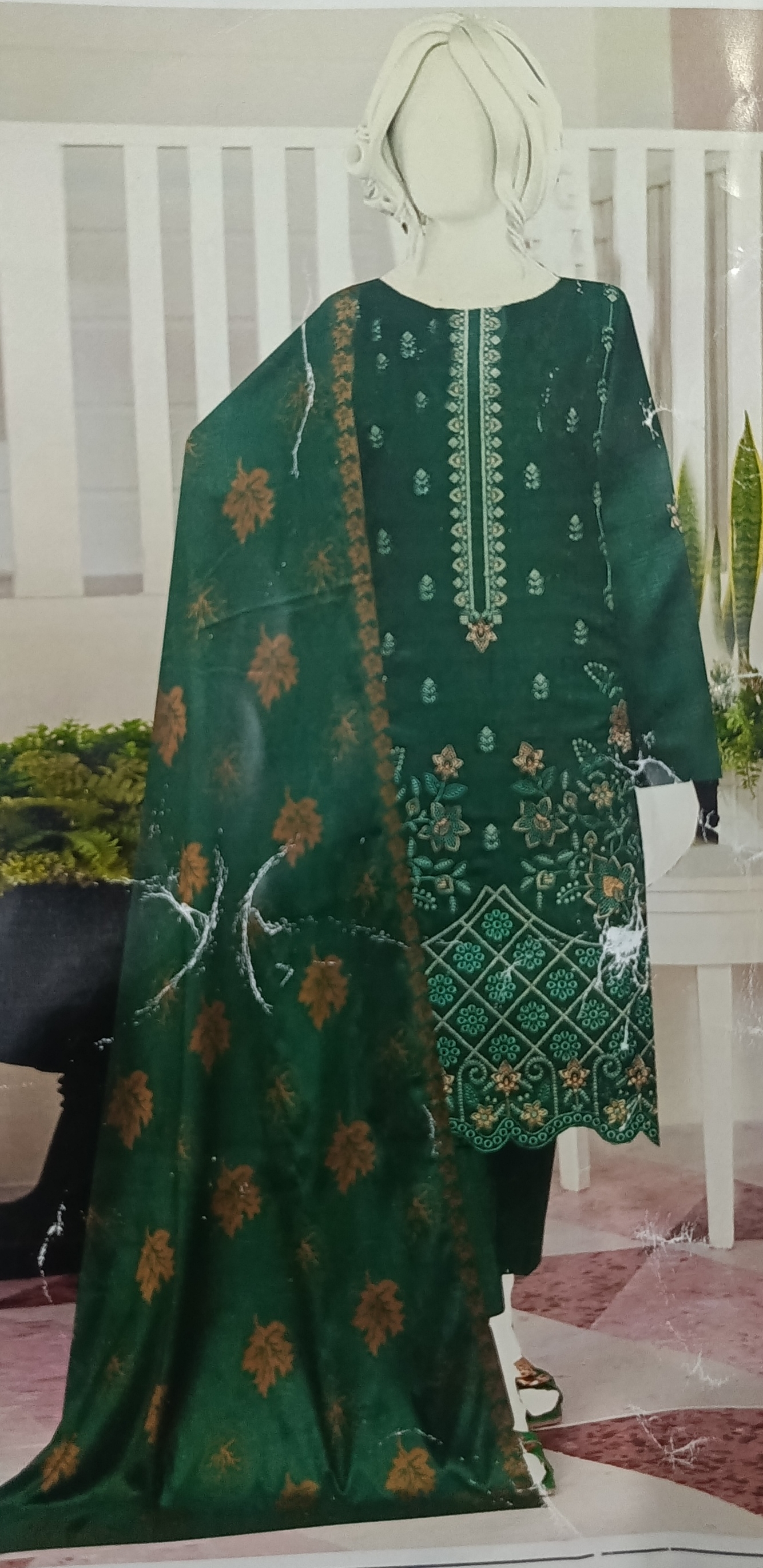 Zellbury Jekard Brosha Shawl With Self Fancy Dhanak (Green)