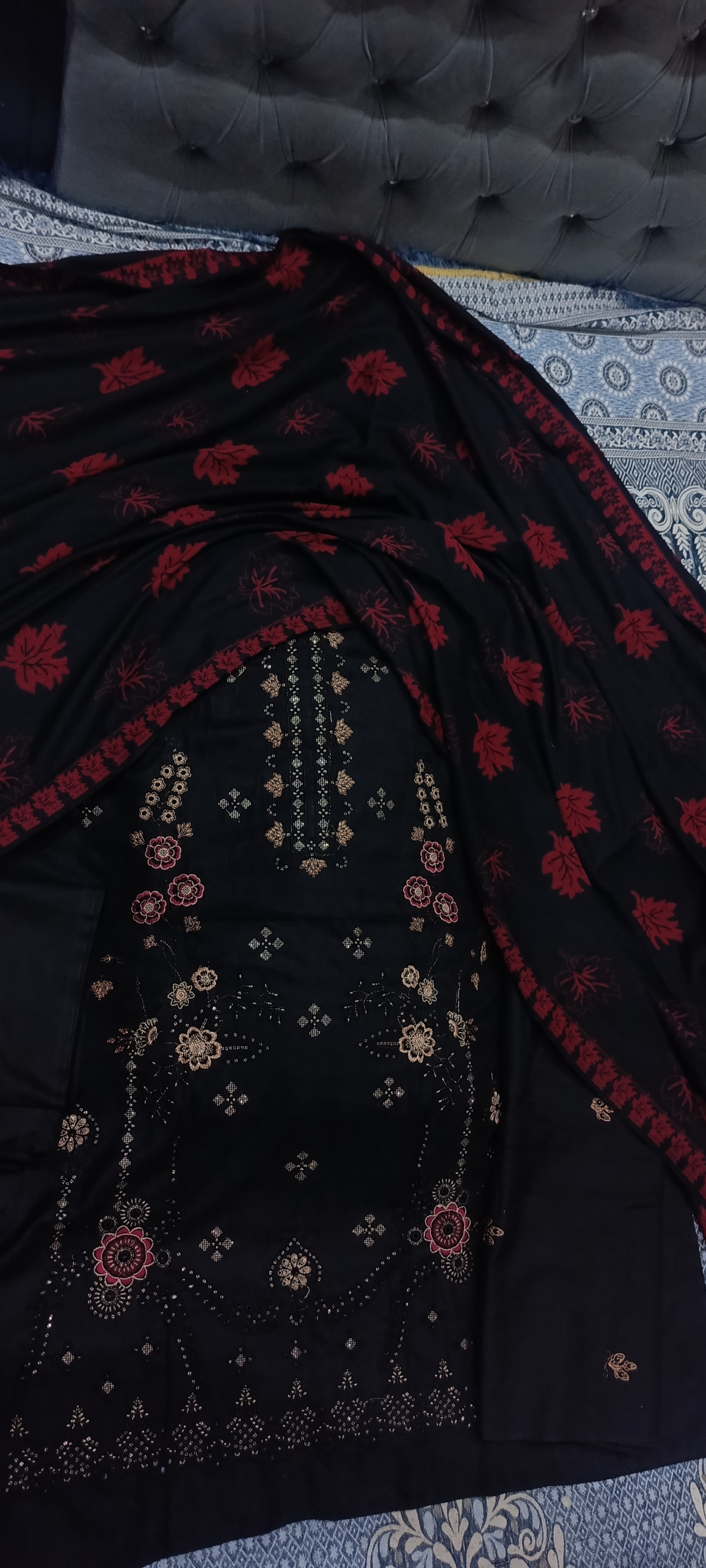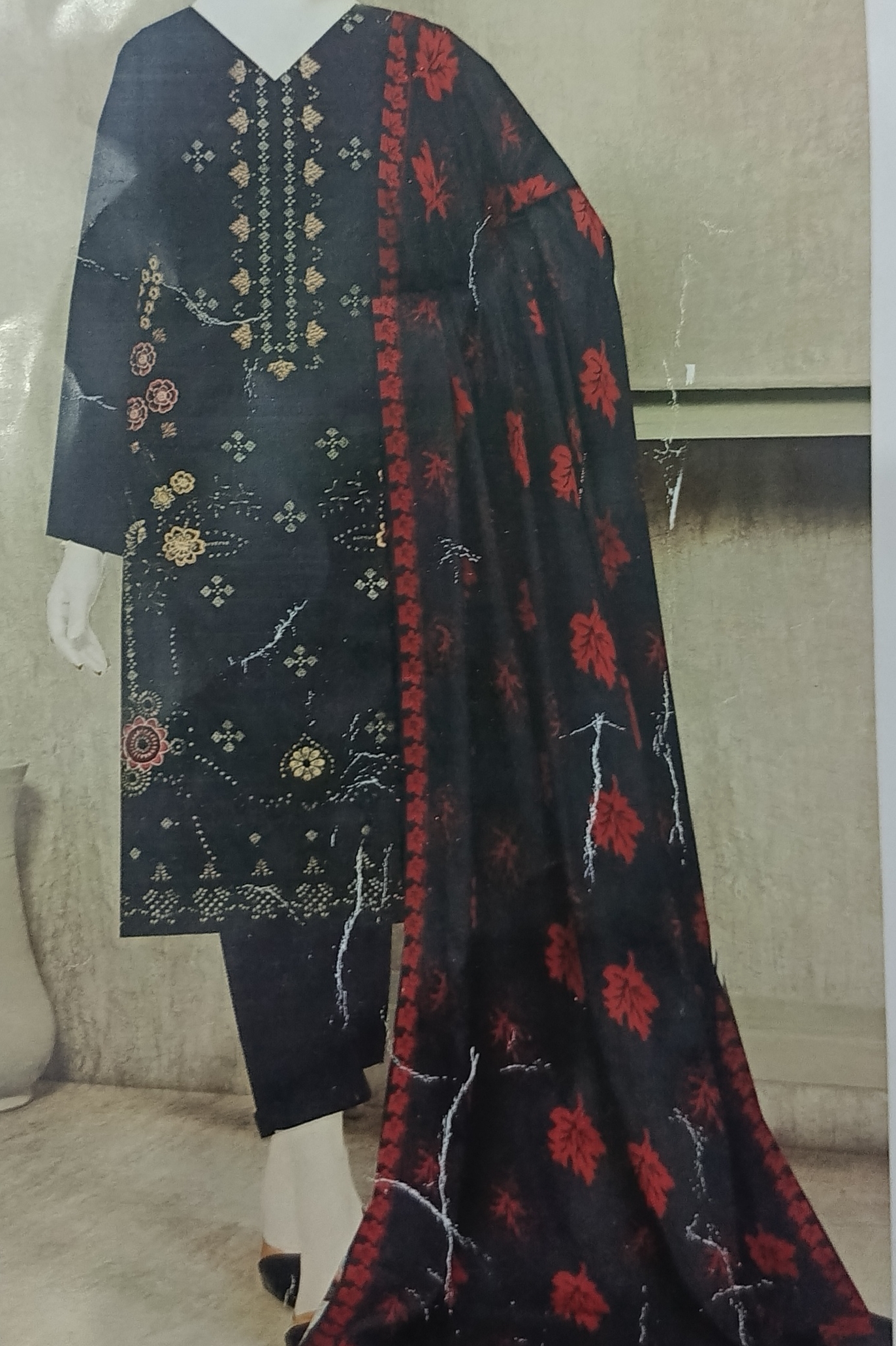 Zellbury Jekard Brosha Shawl with Self Fancy Dhanak (Black)